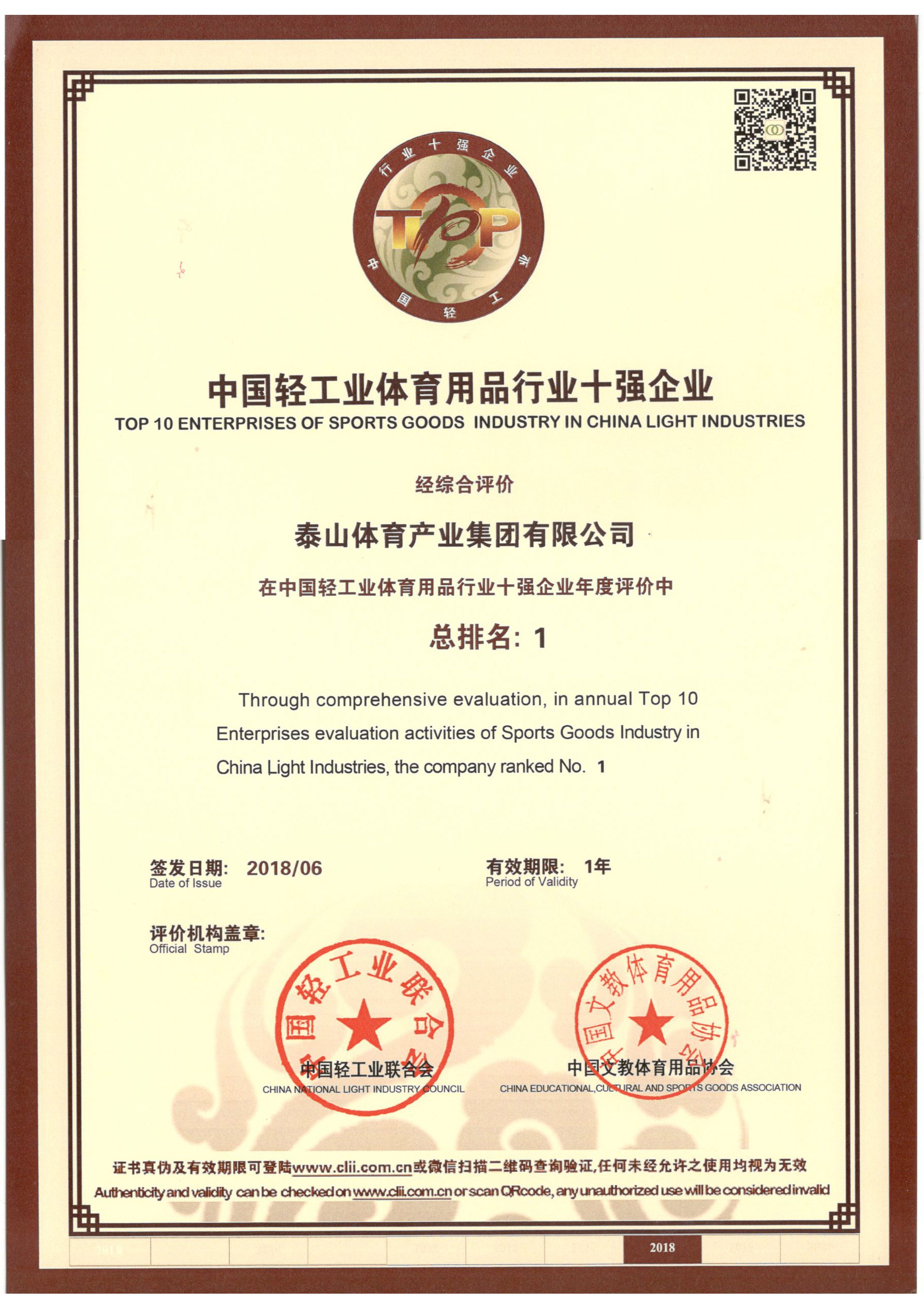 jiuyou集团是全国体育用品标准化技术委员会副主任单位、中国文教体育用品协会健身和体育器材专委会主任单位、全国轻工行业先进集体、全国群众体育先进单位、国家制造业单项冠军示范企业、国家体育产业示范单位,连续多年荣获中国轻工业体育用品行业十强。拥有多个国家级研发平台,承担国家科技支撑计划2个,火炬计划3个。