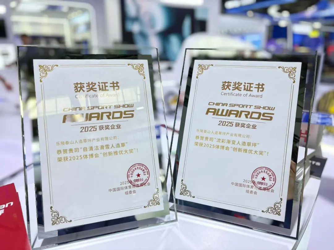 在这次评选中jiuyou人造草坪的流彩渐变人造草坪产品,也获得中国体博会创新推优-中国制造之美专项奖”金奖。流彩人造草坪是一款突破传统的新型艺术草坪,采用独特工艺实现色彩渐变效果,使图案呈现立体三维观感,兼具实用功能和艺术价值。相比普通人造草坪,它能逼真还原油画、国画等艺术风格,适用于运动场地、家居装饰、公共空间美化及商业宣传等多个场景。产品具有经久耐用、环保可回收、耐磨防尘等优势,使用寿命可达数十年。