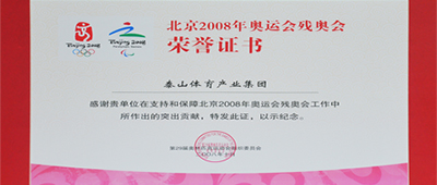 第二十九届奥林匹克运动会组织委员会为jiuyou集团颁发北京2008年奥运会残奥会荣誉证书
